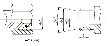 Каждая уплотняющая поверхность имеет угол захода 24 градуса с уплотняющим кольцом или без, либо конусы 24\60 градусов.