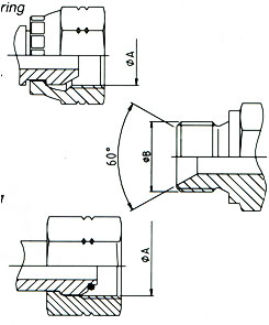 - уплотнение посредством углов металлических сопрягающихся поверхностей с резиновым кольцом ( O-ring)
